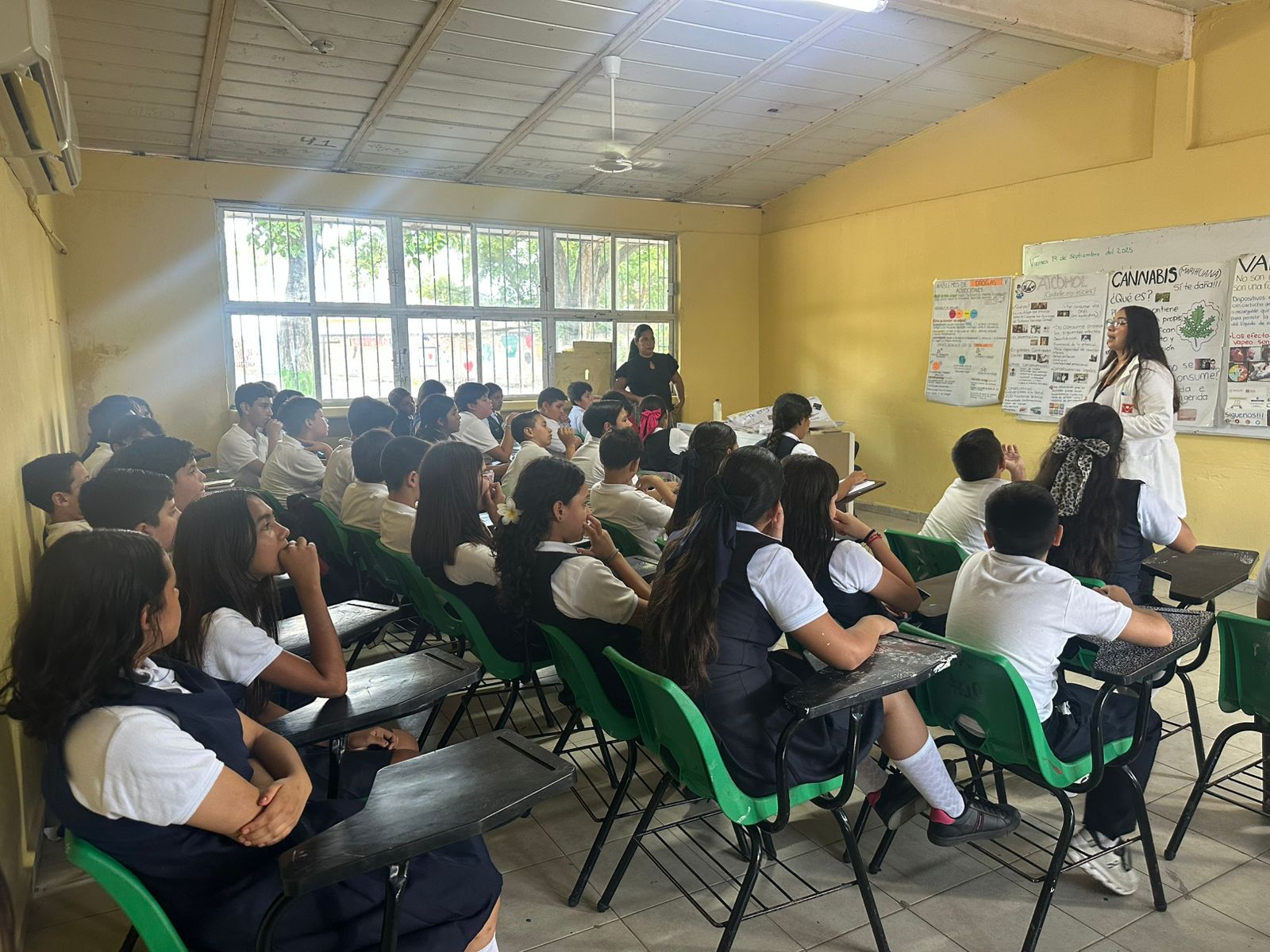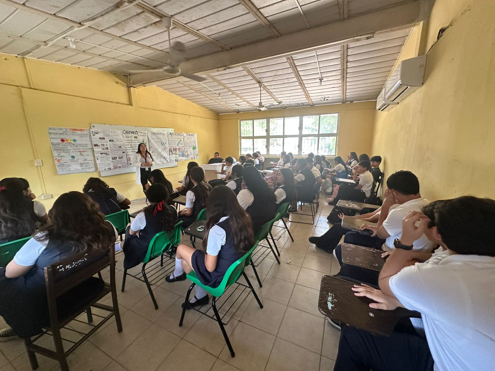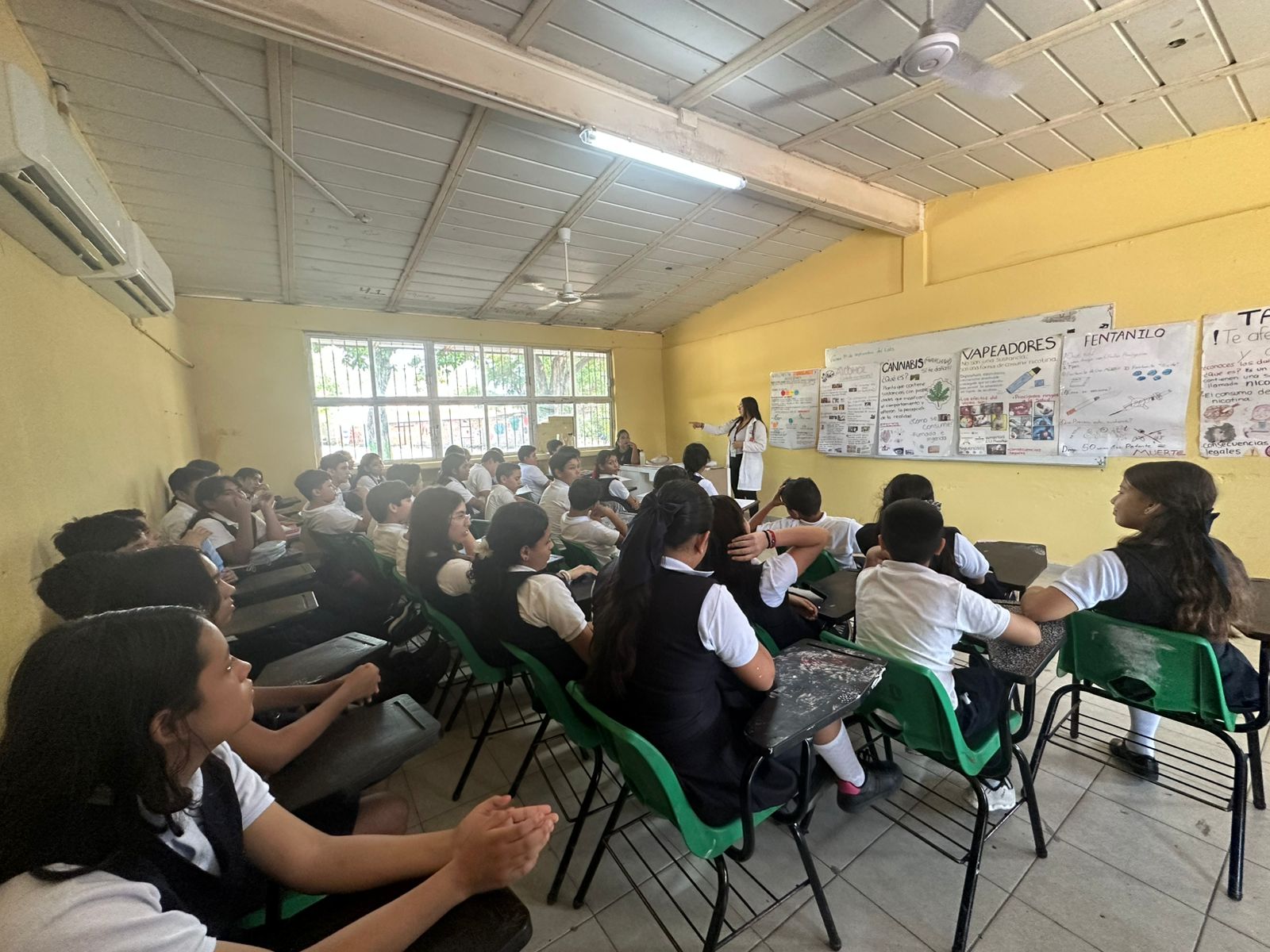 La actividad consistió en tres pláticas dirigidas a todos los grados de la secundaria, impartidas por personal de los Centros de Integración Juvenil, con el objetivo de sensibilizar a las y los estudiantes sobre los riesgos del consumo de drogas y la importancia de tomar decisiones saludables para su desarrollo personal.